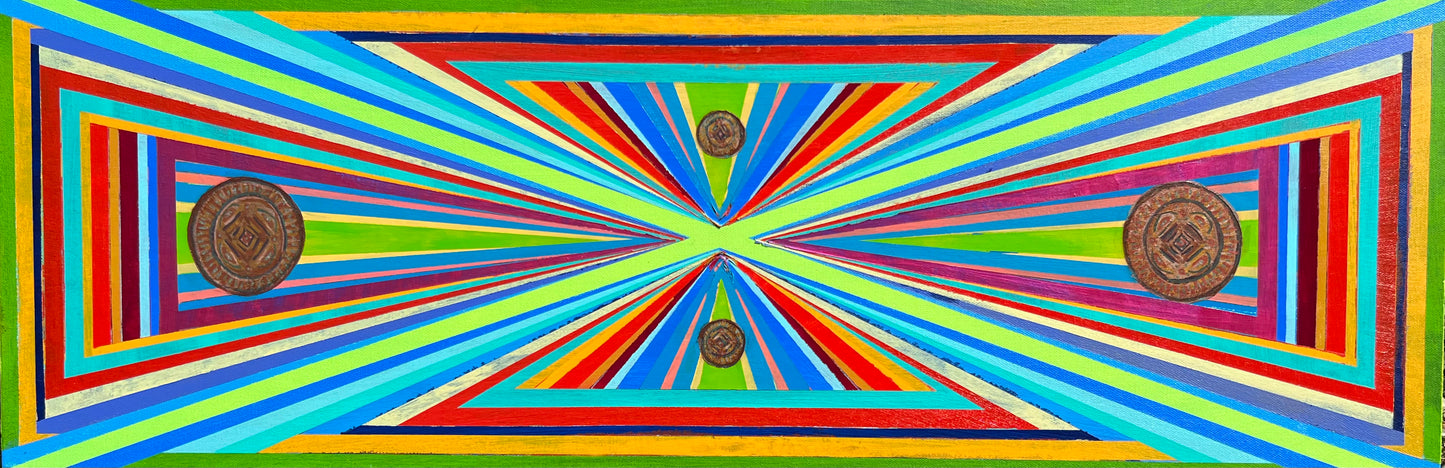 As I was finishing this piece, it was already sold and became a bit of a commission. I thought of this person, her family coin collectors and coins historically becoming talismans for luck. I looked up other talismans. What made those things bear significance, was it hope for or intention within? I imagined myself imbuing this piece with luck, through strokes of my paintbrush. I cannot say whether this piece will bring this person luck but I can say that I feel blessed that she had such immediate connection to this piece. I hope this blessing she gave follows her through this canvas and the lifetime they will now share. How lucky are we both?