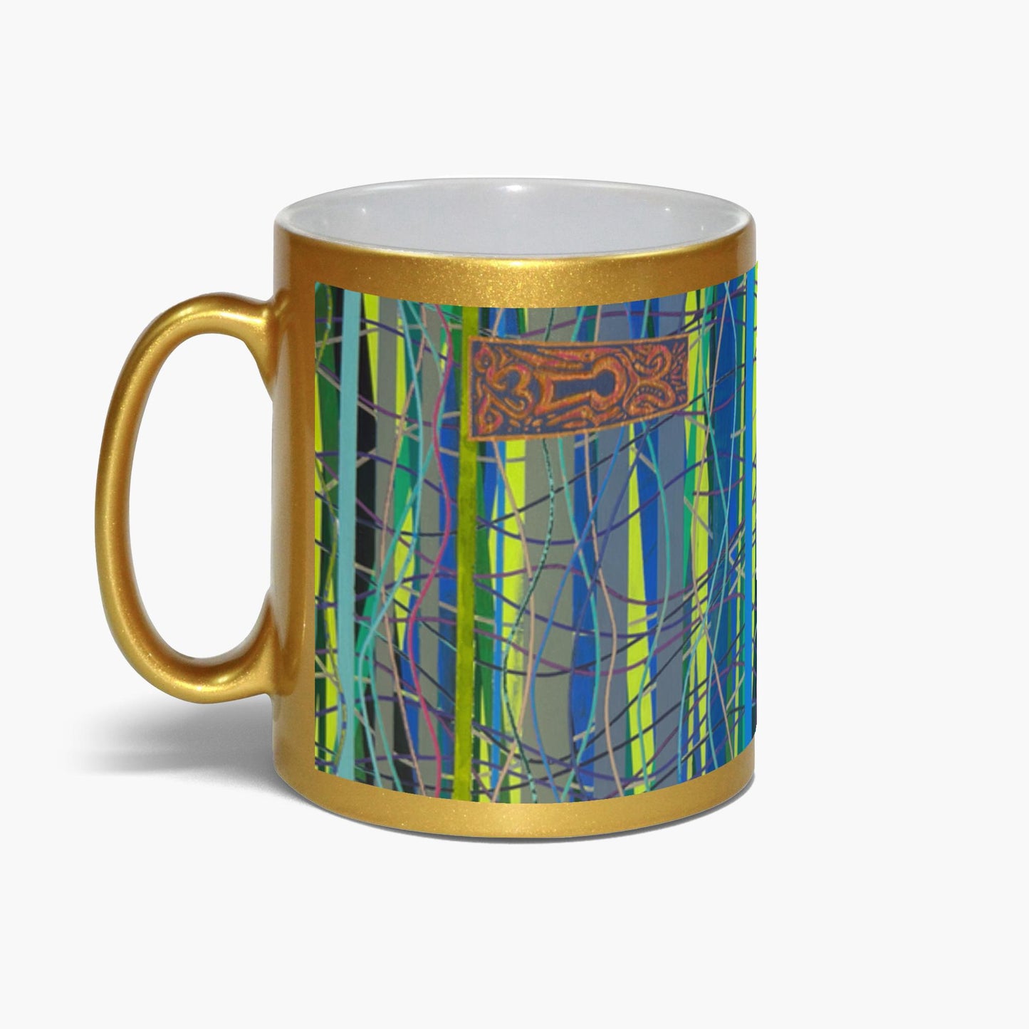 These 11 oz metallic mugs are a perfect way to start your day or close it! Crafted with a white ceramic base, these mugs are coated with your choice of three sparkling colors: pink, silver and gold with a wrap-around Jennifer S. Levine original.